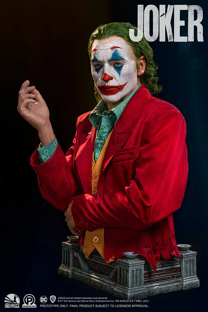 Infinity Studio hereby present the world-class ultimate Arthur Fleck collectible with our proud Silicone life size bust artistry! The masterpiece movieย Jokerย achieved great success in 2019. Joaquin Phoenix casted Arthur Fleck with his brilliant performance in the story about how he become Gothamโsย Jokerย from an ordinary comedian.