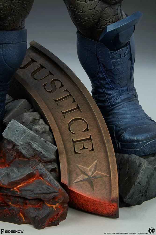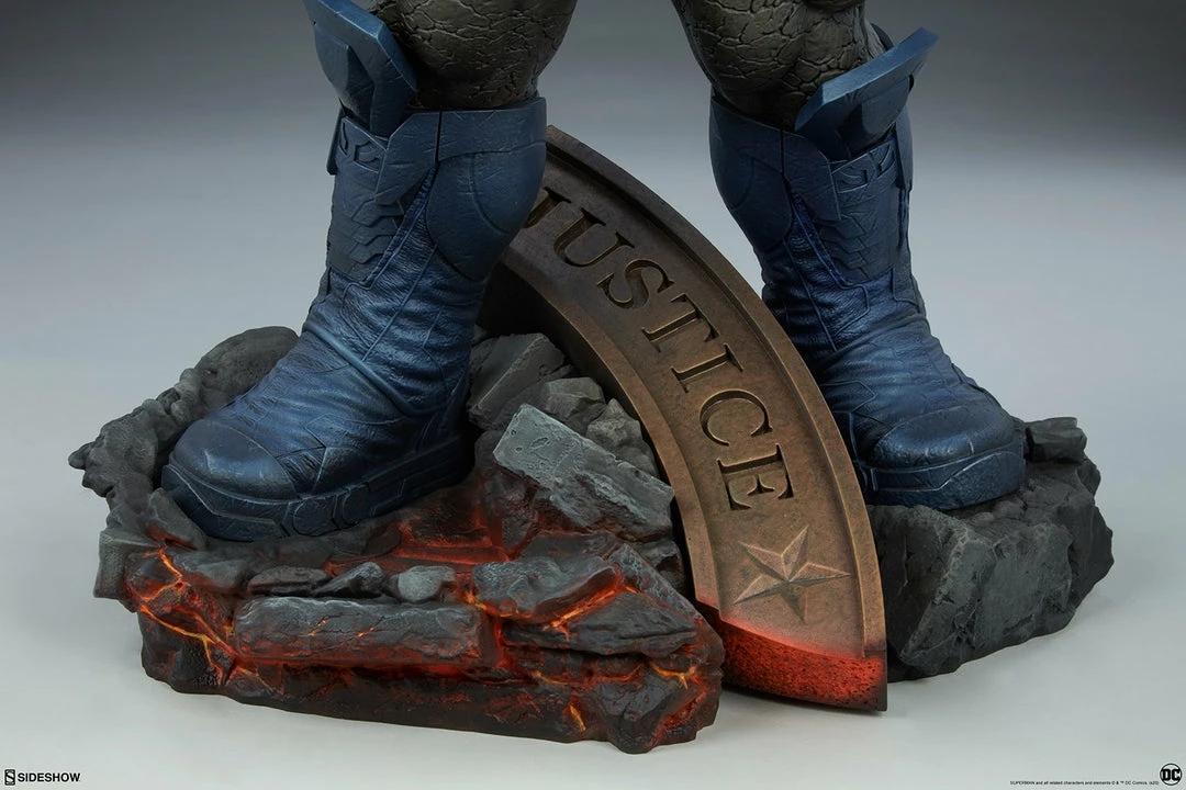 The Darkseid Maquette measures 24β tall atop the wreckage of a destroyed Hall of Justice base. The sadistic conquerorβs march through the Multiverse brings him to confront DCβs greatest heroes, the Justice League, as the rubble of their headquarters smolders and radiates from the heat of his Omega Effect abilities.