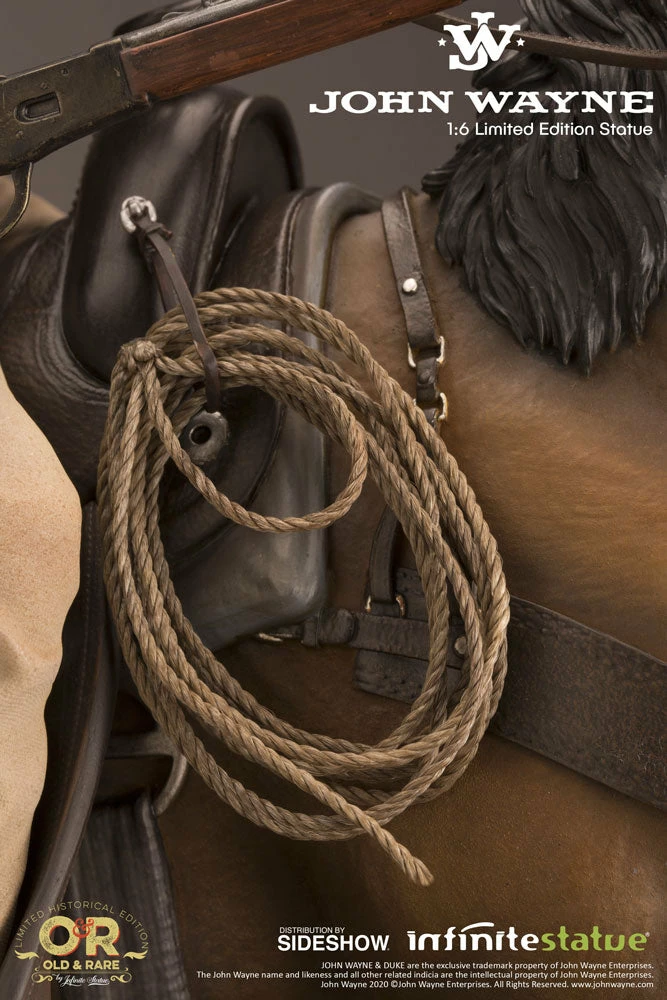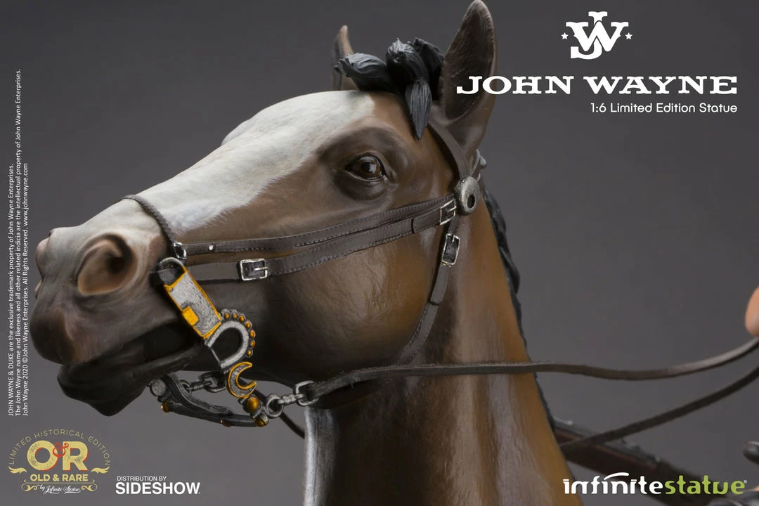 Sideshow and Infinite Statue present the John Wayne 1:6 Scale Statue from the Old & Rare collection. This is a sculpture project that required more time and effort than for virtually all the others that we had previously made. The study of details developed directly from the John Wayne archives enabled us to attain absolute accuracy in both historical and technical aspects. The notable size of an equestrian statue in this format, featuring John Wayne himself (a man 193 centimeters tall), makes it a true cult object for everyone who loves cinema and a great actor of Wayne’s caliber. Nothing comparable dedicated to the world of westerns had ever been created before.