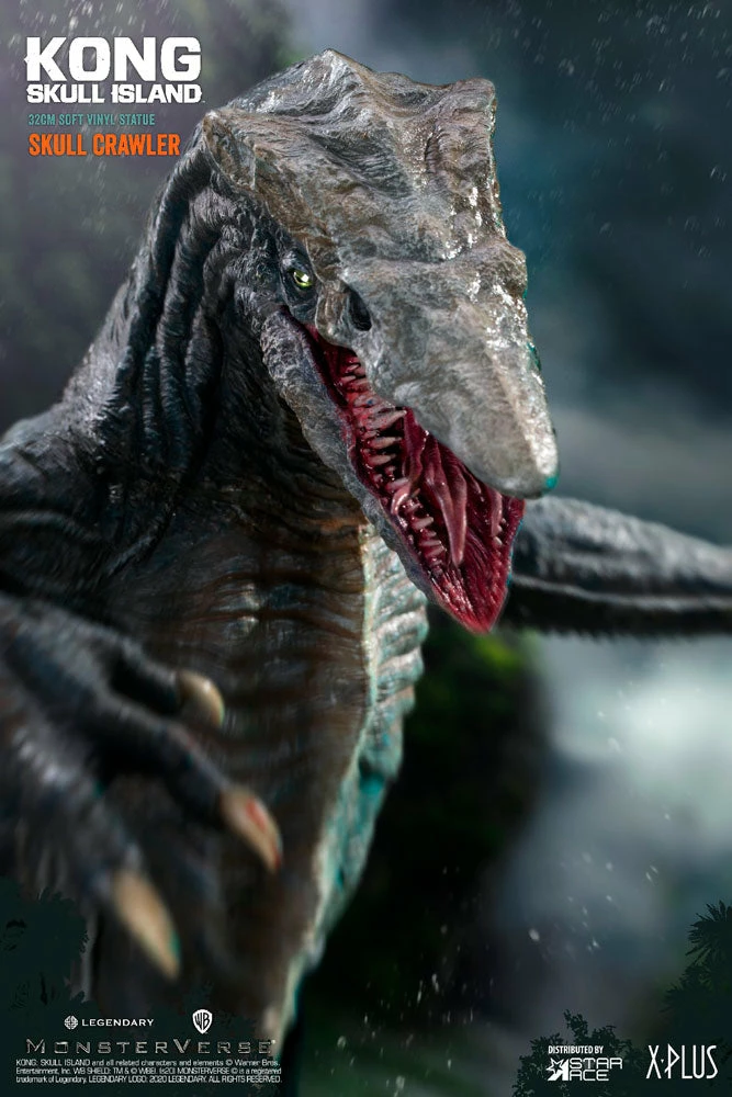 The Monsterverse™ brought us Kong: Skull Island which revitalized the King Kong story and added new and dangerous monsters to the mythos, including the vicious Skullcrawlers. This new 13.78″ vinyl figure captures the fearsome Skullcrawler in action as he prepares to face off against the Mighty Kong. He is painted by hand to bring out all the incredible nuances of his expression and recreate the realism that makes the figure look alive. The Skullcrawler is on a base that simulates it emerging from the water to attack Kong from below.